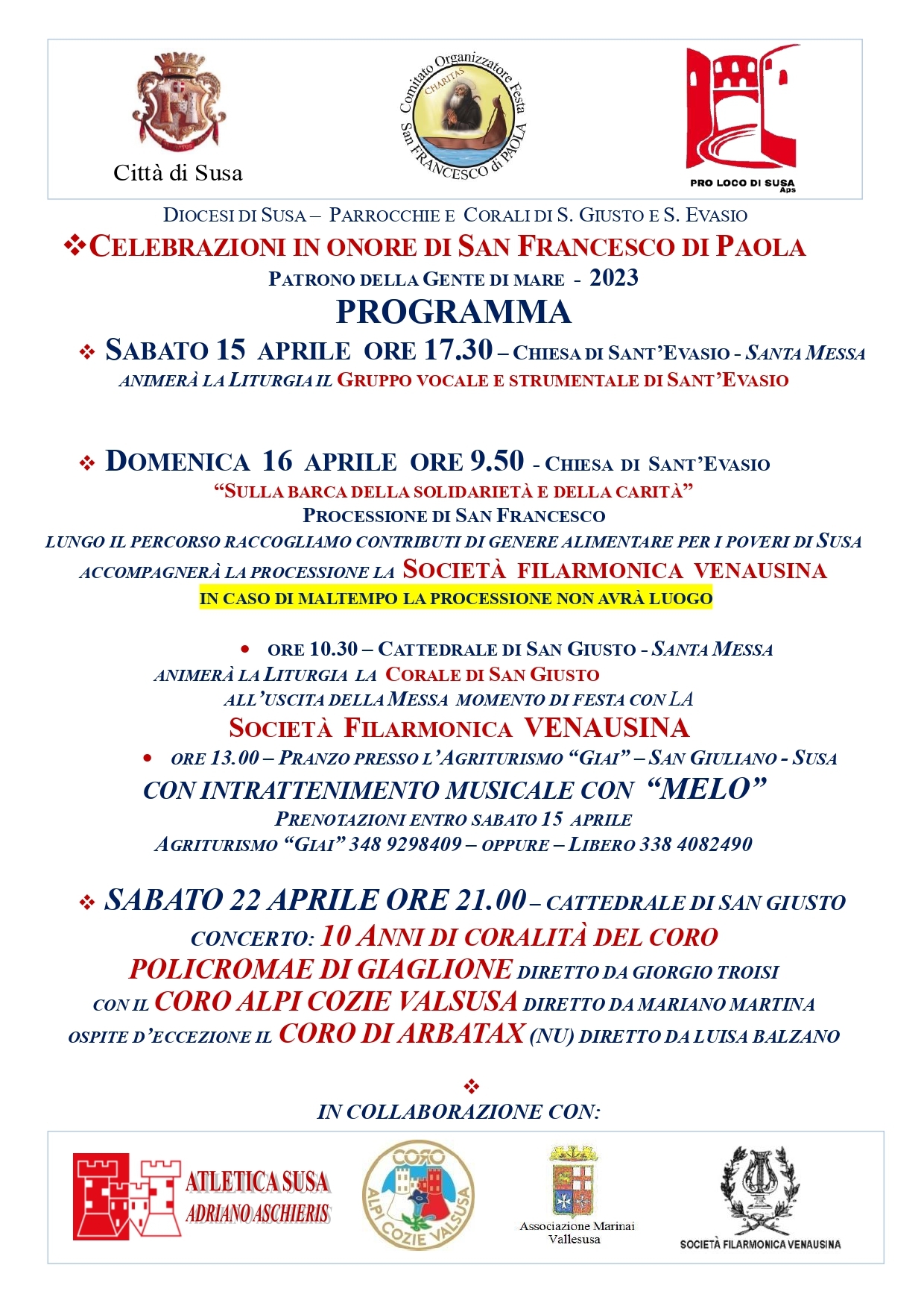 In caso di maltempo la processione non avrà luogo