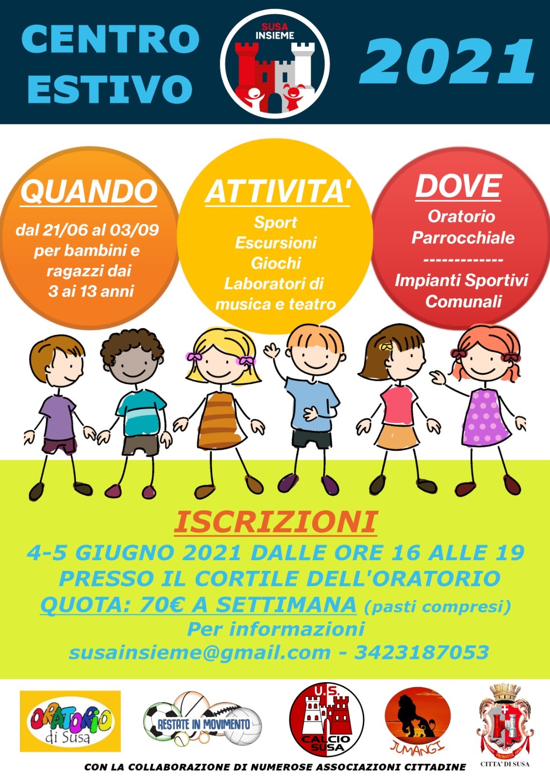 a cura di: Città di Susa, Oratorio di Susa, Ass. Restate in Movimento, U.S. Calcio Susa, Jumangi ludoteca e con la collaborazione di numerose associazioni cittadine