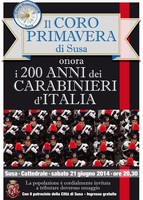 Il Coro Primavera, sabato 21 giugno, alle ore 21, terrà nella Cattedrale di San Giusto, un concerto in occasione del 200° annuale di fondazione dell'Arma dei Carabinieri.
