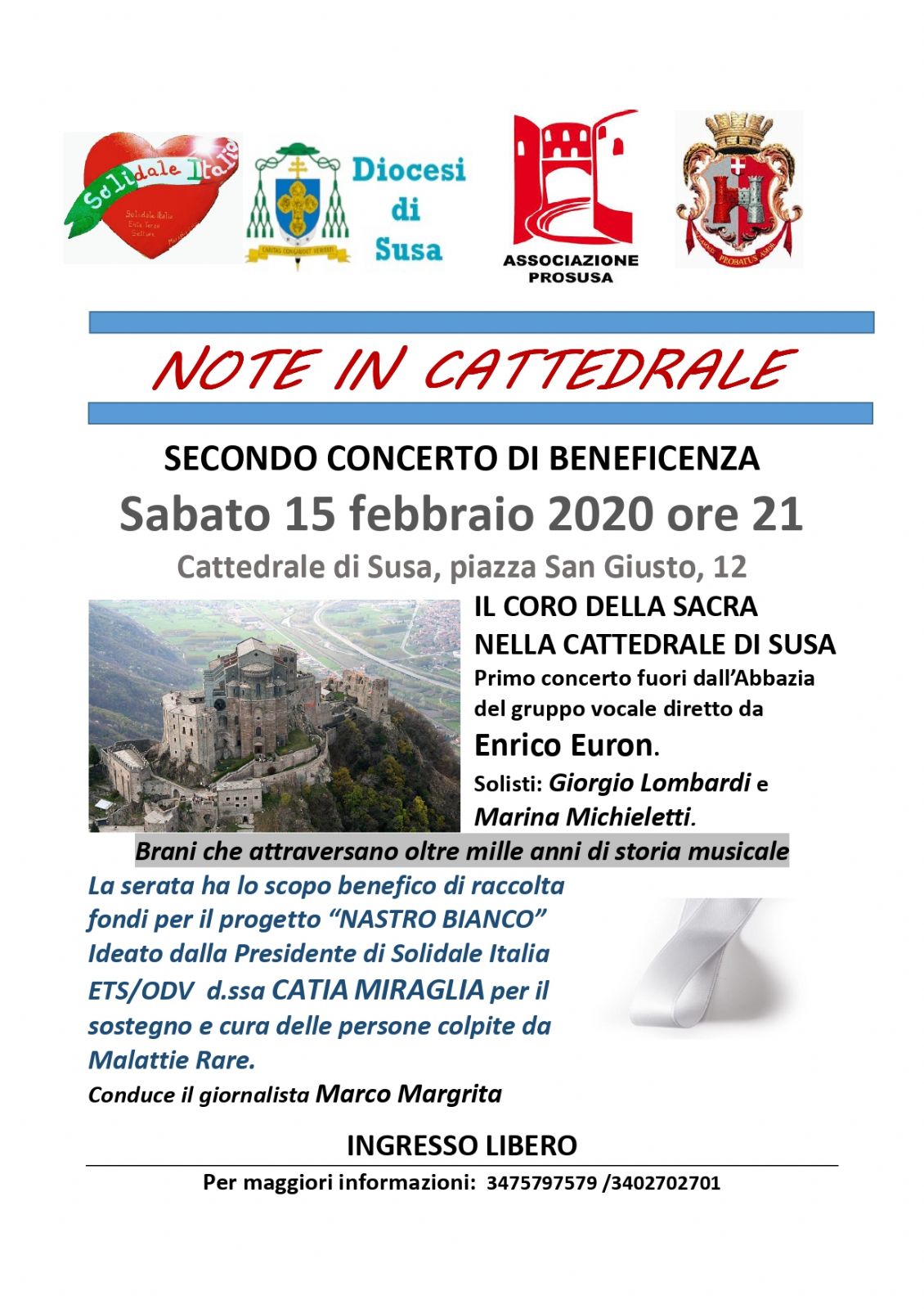 Il ricavato della serata sarà devoluto al progetto "Nastro Bianco" per il sostegno e cura delle persone colpite da malattie rare.