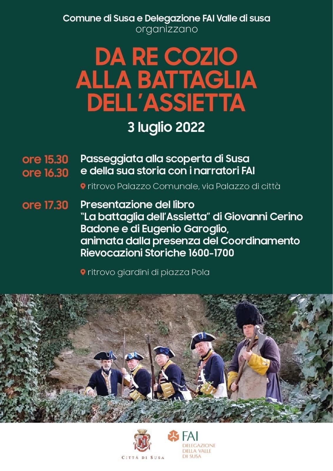 h. 17.30: Presentazione del libro "La battaglia dell'Assietta" di Giovanni Cerino Badone e di Eugenio Garoglio, animata dalla presenza del Coordinamento Rievocazioni Storiche 1600-1700.