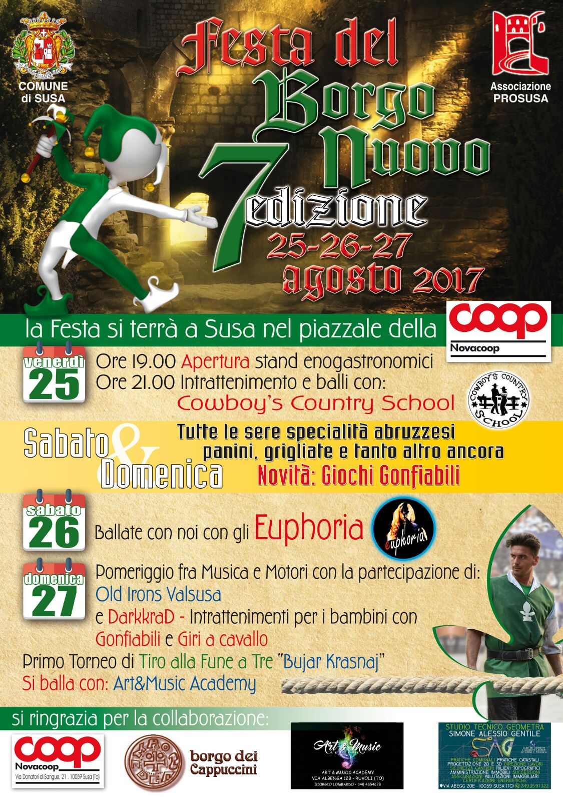 L'iniziativa, organizzata dall'Associazione Borgo Nuovo, è patrocinata dalla Città di Susa.