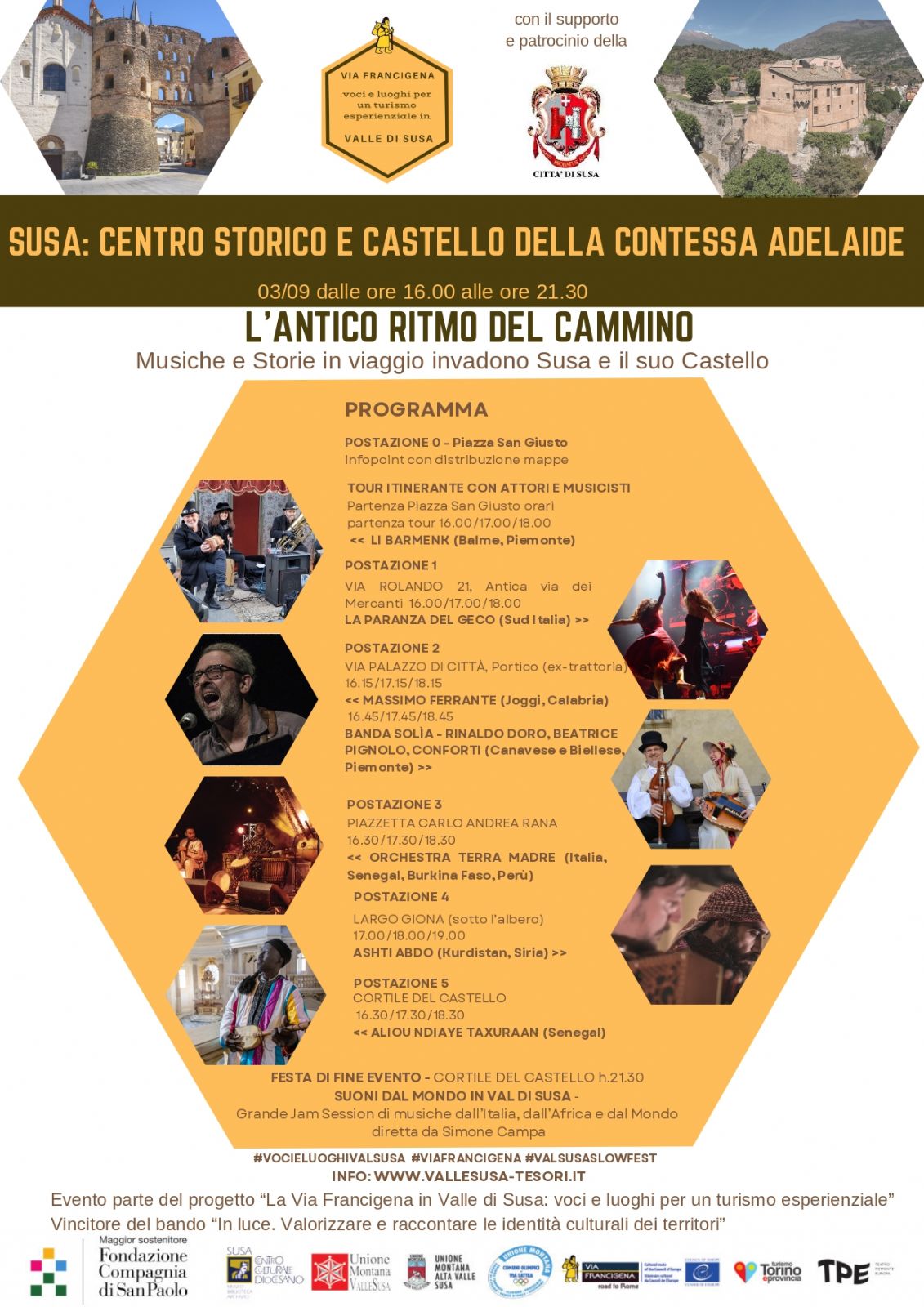 L’ANTICO RITMO DEL CAMMINO Musiche e Storie in viaggio invadono Susa e il suo Castello