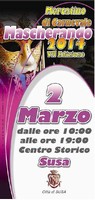 Arriva la festa più divertente, pazza e colorata dell'anno...“MASCHERANDO” Un’occasione per passeggiare nel centro storico della Città di Susa tra bancarelle festose che propongo oggetti curiosi e tante idee regalo, inoltre esibizione degli Sbandieratori di Susa.