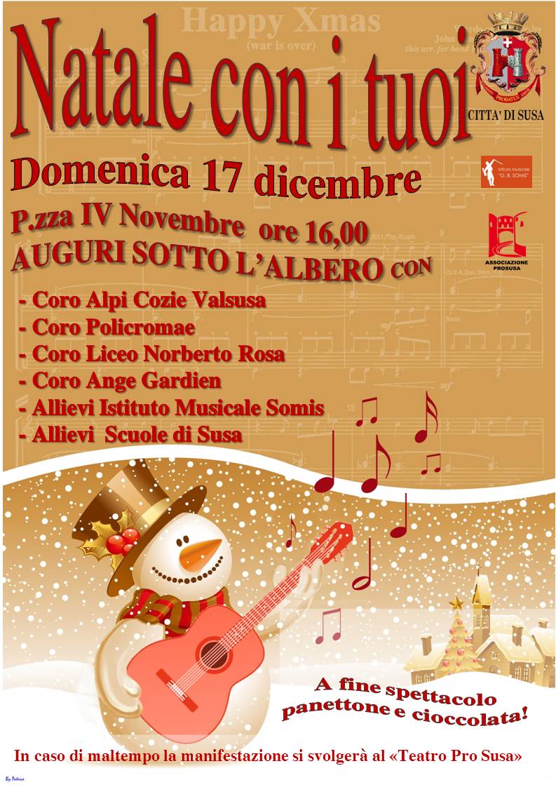 La Città di Susa, in collaborazione con l'Istituto Musicale G.B. Somis e l'Associazione Pro Susa, organizza "Natale con i tuoi ... Auguri sotto l'albero" in Piazza IV Novembre domenica 17 dicembre, a partire dalle ore 16.00.