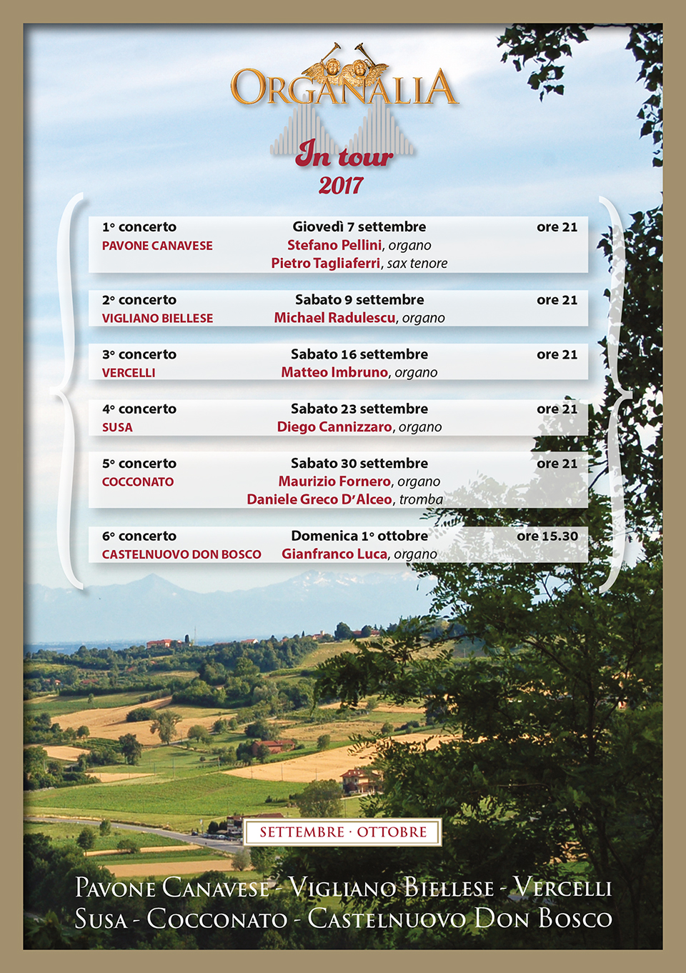 Sabato 23 settembre, alle ore 21.00, nella Cattedrale di San Giusto, avrà luogo il quarto appuntamento concertistico "Organalia in Tour" - Civiltà strumentale italiana tra XIX e XX secolo.
