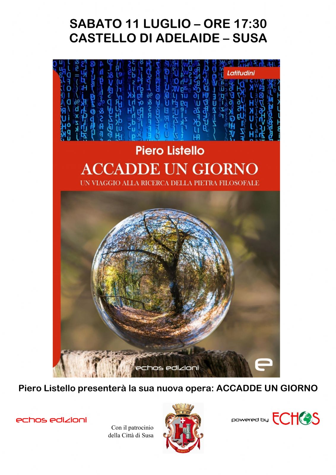 Sabato 11 luglio, alle ore 17.30, nella Sala Conferenze del Castello della Contessa Adelaide, l'autore Piero Listello presenterà il suo nuovo libro "Accadde un giorno", un viaggio in profondità nelle contraddizioni del nostro tempo, pubblicato da Edizioni Echos.