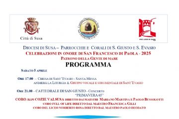 Sabato 05 Aprile 2025 ore 17 : 00 Chiesa di Sant'Evasio - Santa Messa ore 21 : 00 Cattedrale San Giusto - Concerto " Primavera 65" - Coro Alpi Cozie