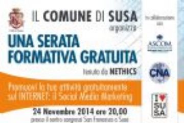 La Città di Susa, in collaborazione con Ascom, Cna e I Love Susa, organizza per il giorno 24 novembre, ore 20.00, presso il Centro Congressi San Francesco, una serata formativa per commercianti,...