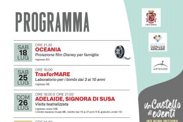 La Città di Susa e l'Associazione Artemide presentano l'iniziativa "UN CASTELLO DI EVENTI" - Arte, natura, spettacolo, che verrà realizzata al Castello di Adelaide dal 18 luglio al 27 settembre....
