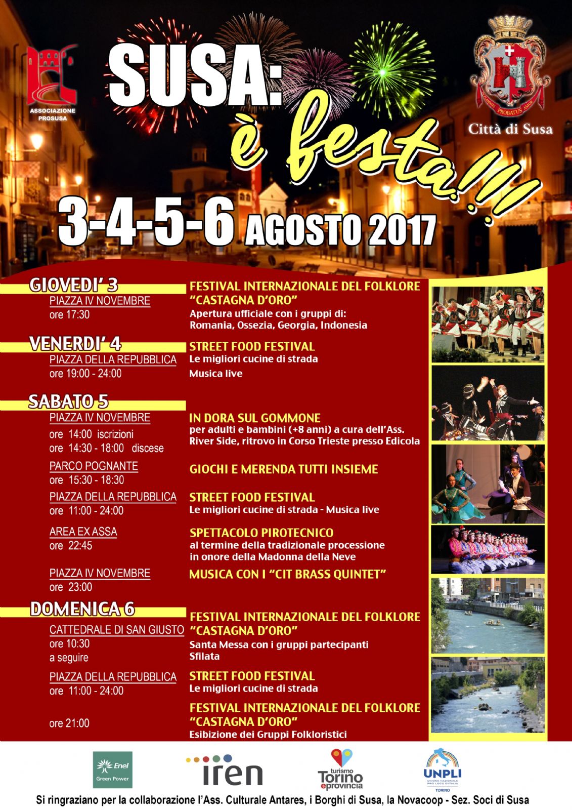 Tra gli eventi in calendario viene ripresentato anche per il 2017 il Festival Internazionale del Folklore, organizzato dall'Associazione Pro Susa.