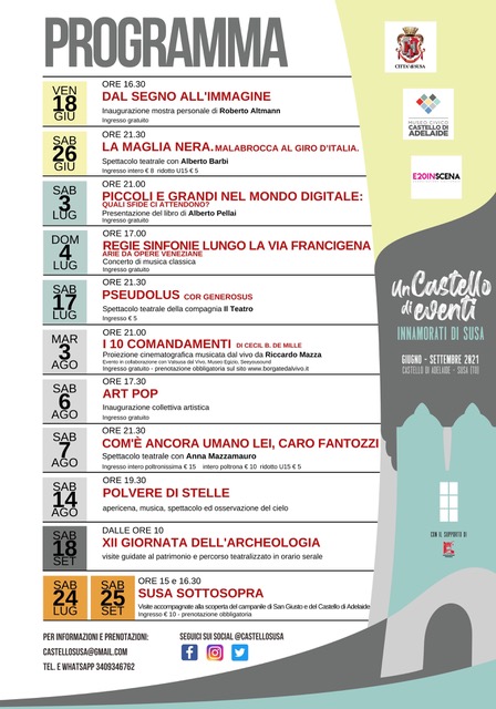 Per informazioni e prenotazioni: castellosusa@gmail.com - tel. e whatsapp 3409346762