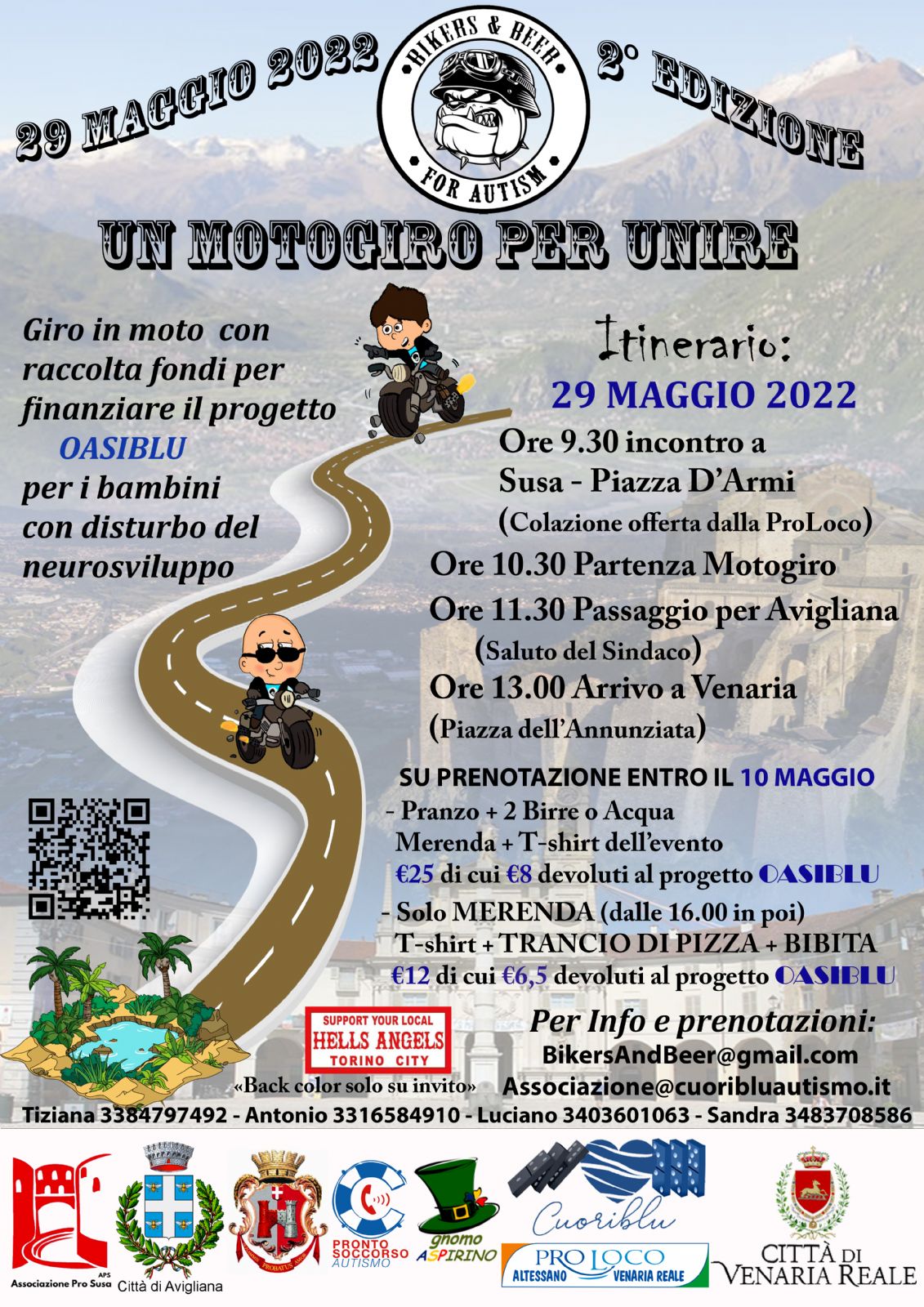 Giro in moto con raccolta fondi per finanziare il progetto OASIBLU per i bambini con disturbo del neurosviluppo, organizzato dall'Associazione Cuori Blu Autismo, con il patrocinio della Città di susa