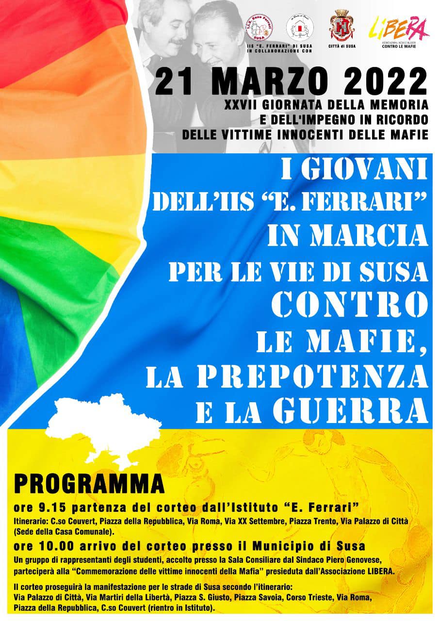 Lettura istituzionale dei nomi delle vittime innocenti delle mafie organizzata da Libera Bassa Val Susa, in collaborazione con l'IIS "Enzo Ferrari di Susa.