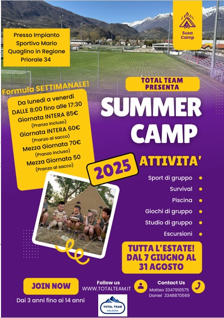 ** Attenzione si comunica che il Centro Estivo "Summer Camp" dell'Asd Total Team Valsusa dal 25/06/2025 non è più attivo!