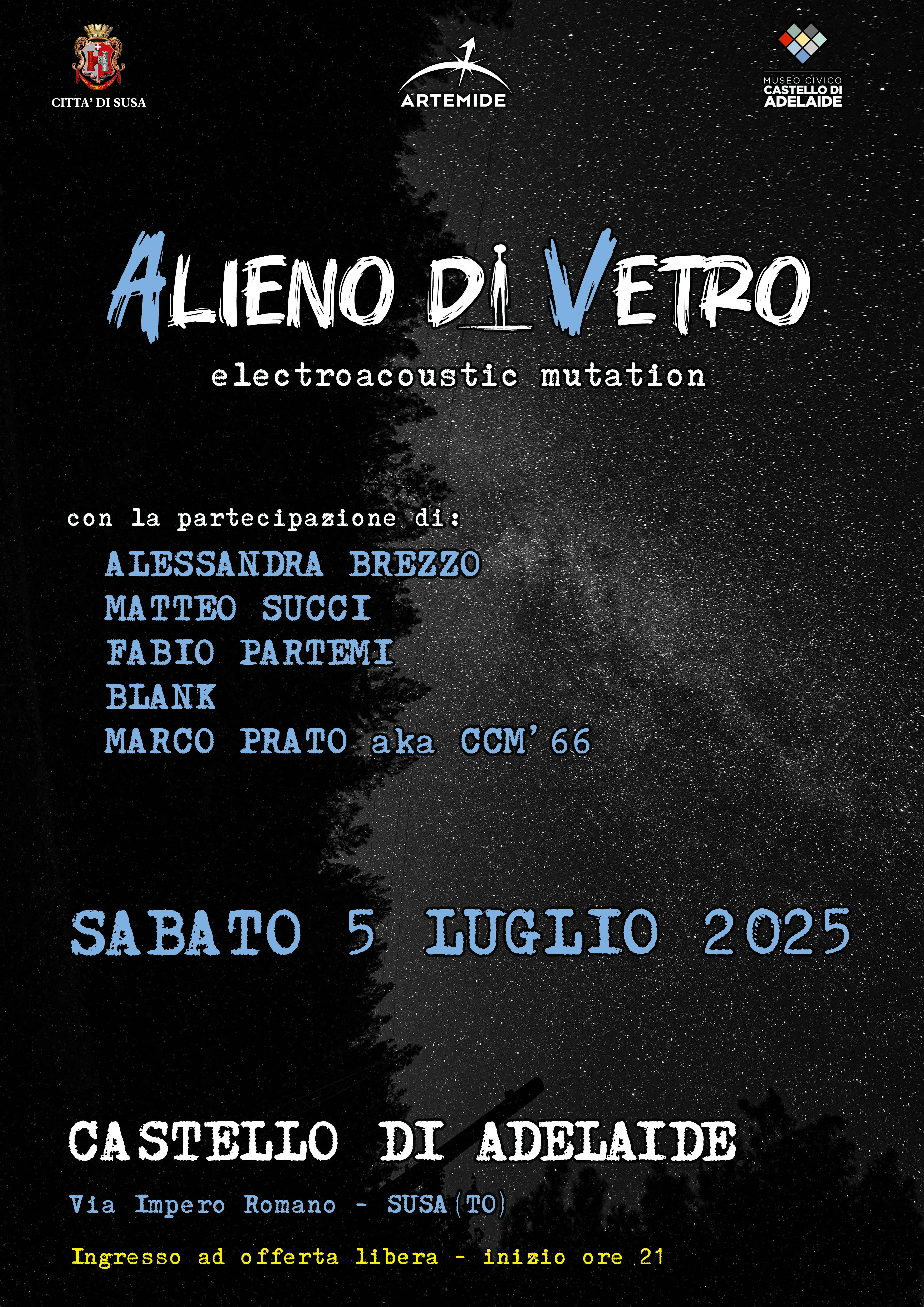 Sabato 5 luglio a Susa, i magici colori notturni del Castello di Adelaide,faranno da cornice al ritorno di Alieno di Vetro che presenterà il suo nuovo concerto/spettacolo “Electroacoustic Mutation”.