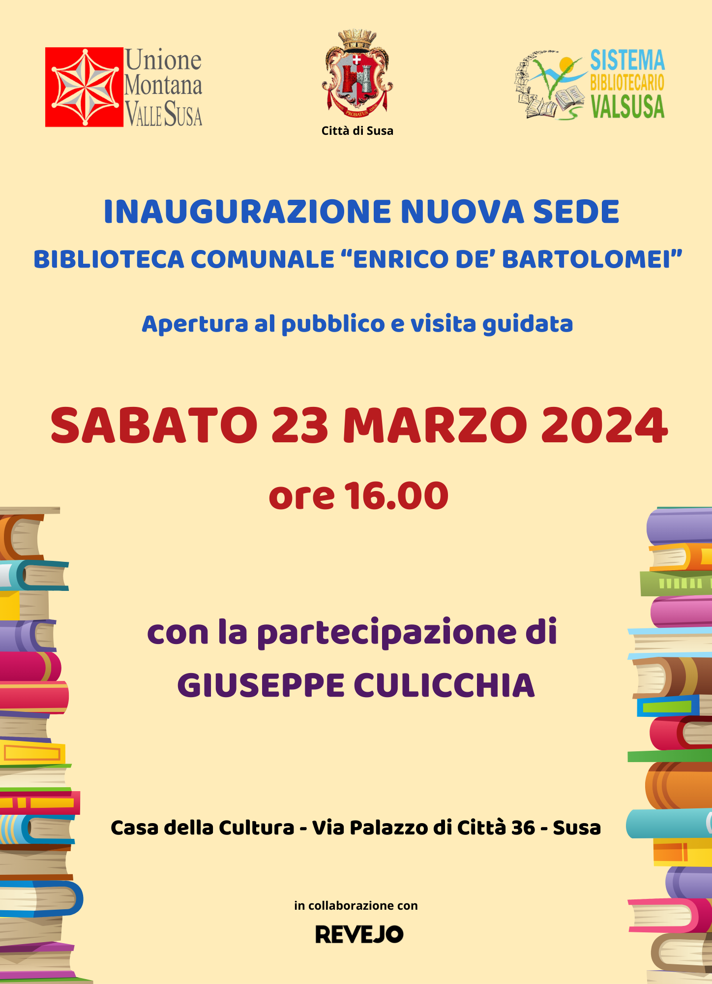 Unione Montana Valle Susa, Città di Susa, Sistema bibliotecario Valsusa, in collaborazione con l'associazione Revejo